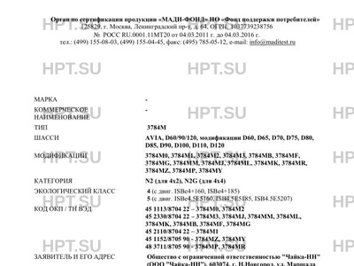 Категория ТС N2 (для 4х2), N2G (для 4х4)
