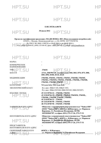 Код VIN VIN с ХUB3784M??0000001 по ХUB3784M??0000100.