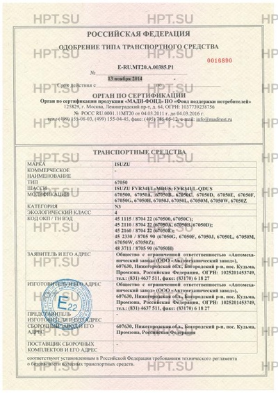 | Базовое ТС / Шасси | ISUZU FVR34UL-MDUS, FVR34UL-QDUS |