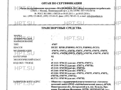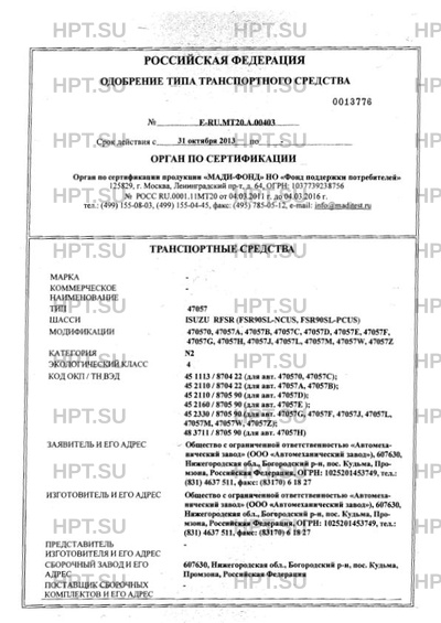 | Базовое ТС / Шасси | ISUZU RFSR (FSR90SL-NCUS, FSR90SL-PCUS) |