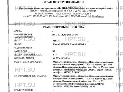 | Категория ТС | N2 |