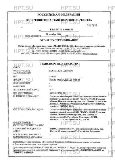 | Тип ТС | ПСС-121.8,5Э (АП7М-10) |