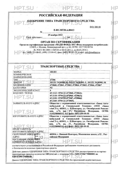| Базовое ТС / Шасси | ISUZU NQR90L-K, ISUZU NQR90L-L, ISUZU NQR90L-M |