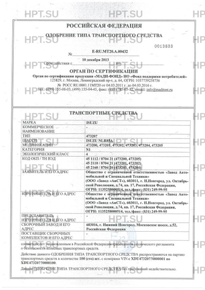 | Код VIN | VIN с ХDU47320??0000001 по ХDU47320??0000100 |
