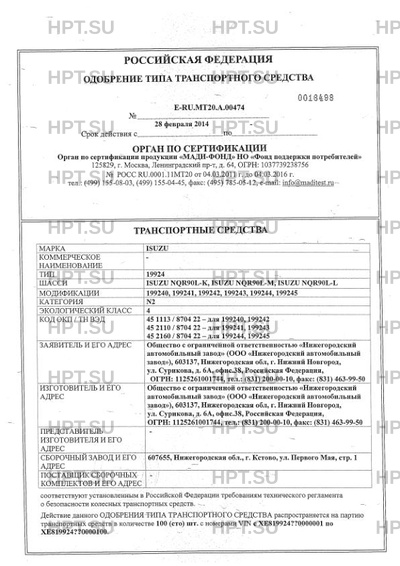 | Базовое ТС / Шасси | ISUZU NQR90L-K, ISUZU NQR90L-M, ISUZU NQR90L-L |