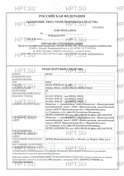 Код VIN VIN с XE819923??0000001 по XE819923??0000100.
