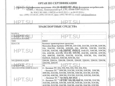 | Базовое ТС / Шасси | базовые транспортные средства: Mercedes-Benz Sprinter 209CDI, 210 CDI, 211CDI,… |