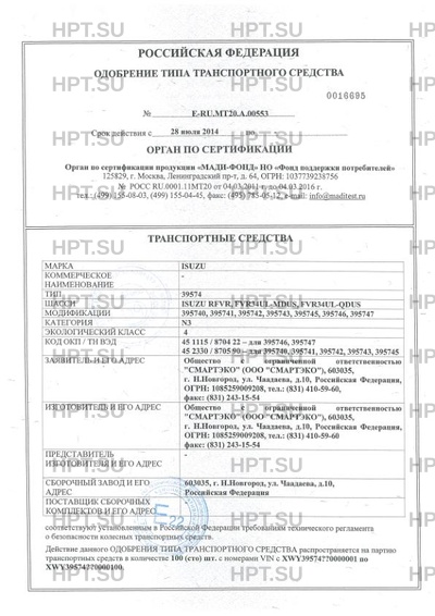 Код VIN VIN с ХWY39574??0000001 по ХWY39574??0000100.