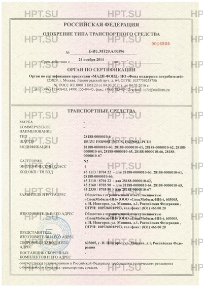 | Тип ТС | 28188-0000010-6 |