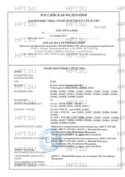 | Базовое ТС / Шасси | базовое транспортное средство Volkswagen Crafter, 2ЕКЕ1, 2EKE2, 2ЕКZ |