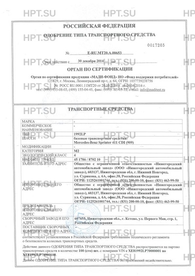 | Базовое ТС / Шасси | базовые транспортные средства: Mercedes-Benz Sprinter 411 CDI (909) |