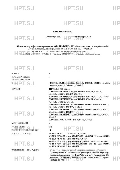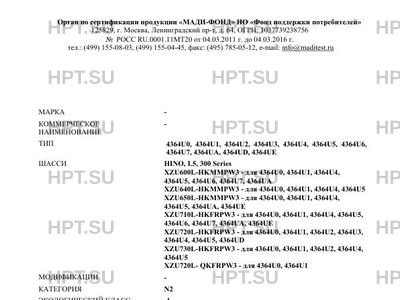 Базовое ТС / Шасси HINO, L5, 300 Series XZU600L-HKMMPW3 - для 4364U0, 4364U1, 4364U4, 4364U5, 4364…