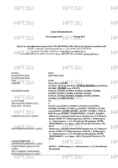 Базовое ТС / Шасси FIAT DUCATO 250 CCMAC, DCMAD, DCMAC, CCMAU, DCMAU(для FST0?4) DCMHC, DCMHU (для…