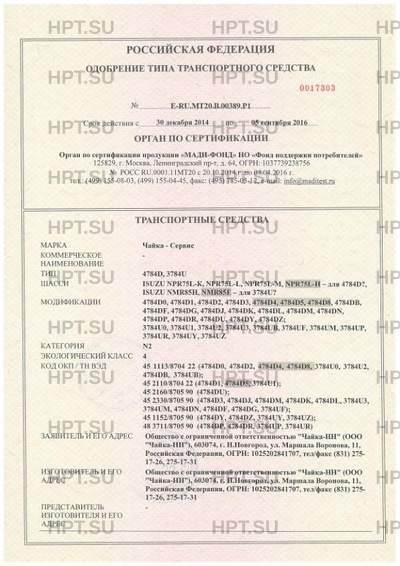 | Базовое ТС / Шасси | ISUZU NPR75L-К, NPR75L-L, NPR75L-M, NPR75L-Н - для 4784D?, ISUZU NMR85H, NMR85… |