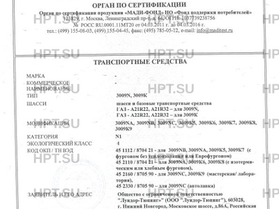 | Базовое ТС / Шасси | шасси и базовые транспортные средства ГАЗ - A21R22, A21R32 - для 3009N, ГАЗ - … |