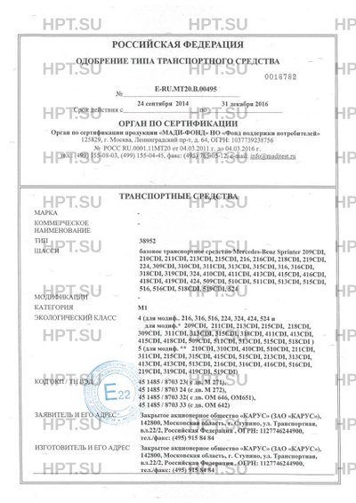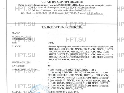 | Базовое ТС / Шасси | базовое транспортное средство Mercedes-Benz Sprinter 209CDI, 210CDI, 211CDI, 213CDI, 215CDI, 216, 216CDI, 218CDI, 219CDI, 224, 309CDI, 310CDI, 311CDI, 313CDI, 315CDI, 316, 316CDI, 318CDI, 319CDI, 324, 410CDI, 411CDI, 413CDI, 415CDI, 416CDI, 418CDI, 419CDI, 424, 509CDI, 510CDI, 511CDI, 513CDI, 515CDI, 516, 516CDI, 518CDI, 519CDI, 524 |