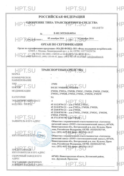| Базовое ТС / Шасси | ISUZU NMR85H, NMR85E |