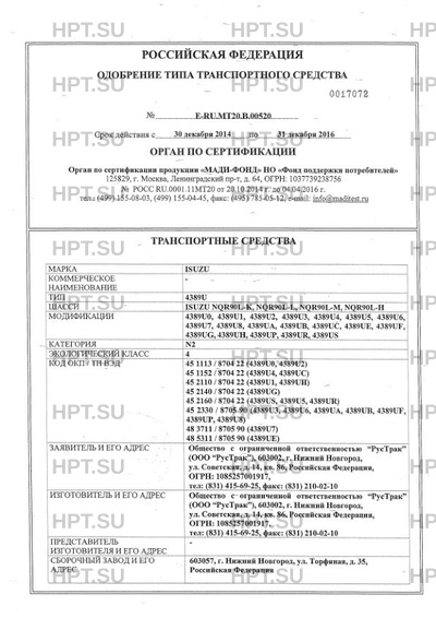 | Предприятие-изготовитель | Общество с ограниченной ответственностью “РусТрак” (ООО “РусТрак”), 603002, г. Нижний Новгород, ул. Советская, д. 14, кв. 86, Российская Федерация, ОГРН: 1085257001917, тел: (831) 415-69-25, факс: (831) 210-02-10 |