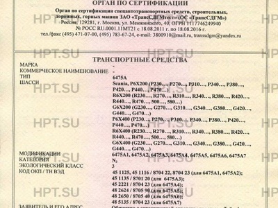 | Базовое ТС / Шасси | Scania, P6X200 (P230…, P270…, P310…, P340…, P380…, P420…, P440…, P470…) R6X200 (R230…, R270…, R310…, R340…, R380…, R420…, R440…, R470…, 500…, 580…) G6X200 (G230…, G270…, G310…, G340…, G380…, G420…, G440…, G470…) P6X400 (P230…, P270…, P310…, P340…, P380…, P420…, P440…, P470…) R6X400 (R230…, R270…, R310…, R340…, R380…, R420…, R440…, R470…, 500…, 580…) G6X400 (G230…, G270…, G310…, G340…, G380…, G420…, G440…, G470…) |