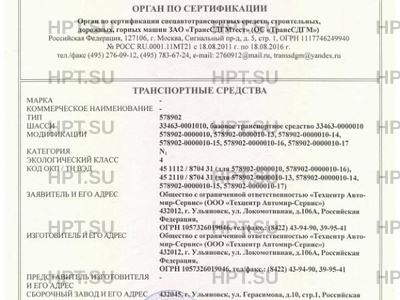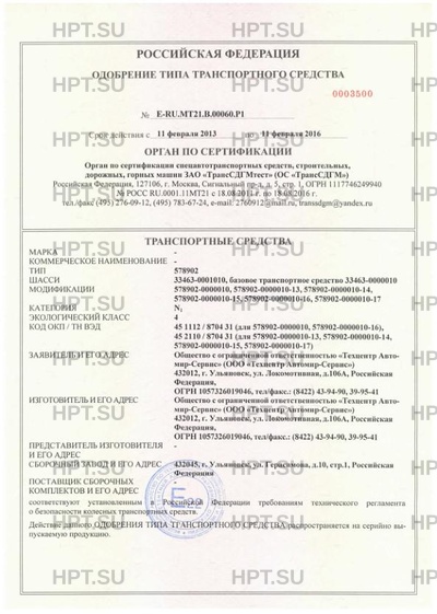 | Базовое ТС / Шасси | 33463-0001010, базовое транспортное средство 33463-0000010 |