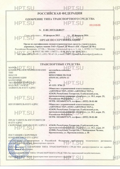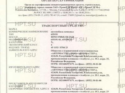 | Базовое ТС / Шасси | HINO FM8JLTD-TGR |