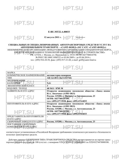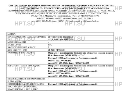 | Коммерческое наименование | автоцистерна пожарная. Тип ТС: АЦ 1,6-40/2 (ЗиЛ-432744) |
