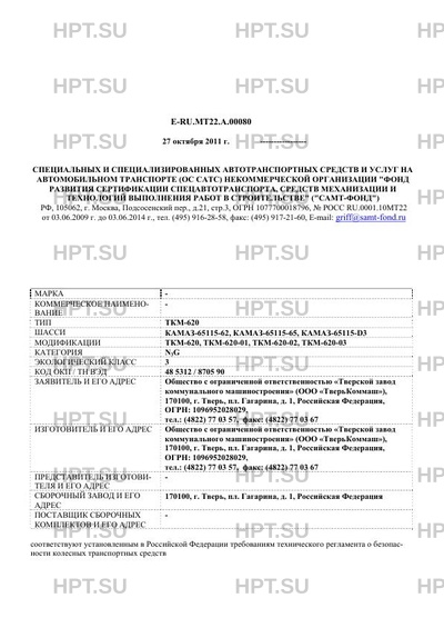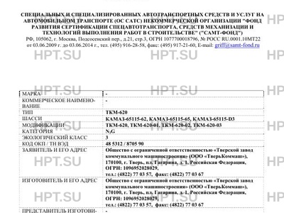 Коммерческое наименование . Тип ТС: ТКМ-620