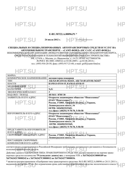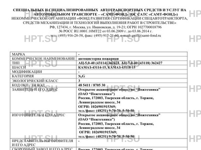 | Заявитель | Открытое акционерное общество "Пожтехника" (ОАО "Пожтехника") Россия, 172003, Тверская область, г. Торжок, Ленинградское шоссе, 34 ОГРН: 1026901915369; тел./факс: (48251) 9-70-70, 5-50-50 |