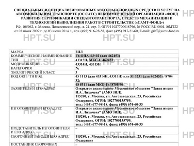 | Дополнительная информация | Назначение транспортного средства:; для перевозки грузов различного назначения, кроме опасных грузов (для 43314Н, 43315Н);; мусоровоз (для МКС-1);; для перевозки молока и других пищевых жидкостей (для 462453).; |