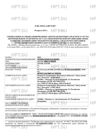 | Номер документа | ТС RU E-RU.МТ22.А.00175.И1 |