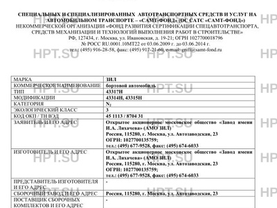 | Код ОКП | 45 1113 / 8704 31 |