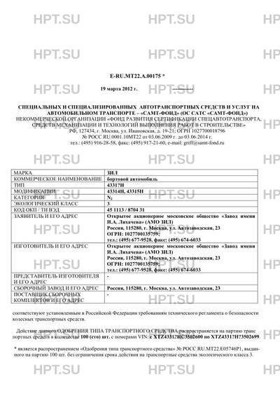 | Код VIN | с ХTZ4331?НС3502600 по ХTZ4331?Н?3502699 |