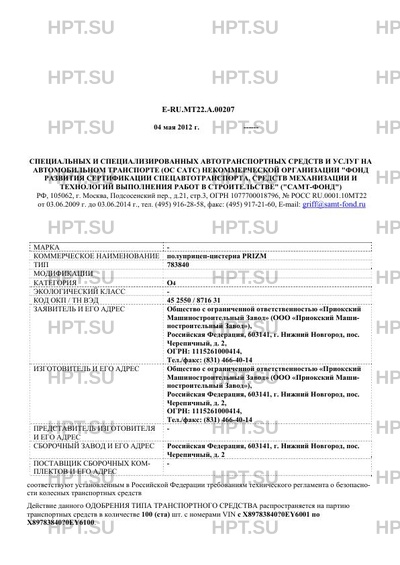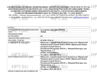 | Коммерческое наименование | полуприцеп-цистерна PRIZM |