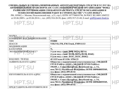 | Базовое ТС / Шасси | VOLVO, FM, FM-Truck, FM9/11/13 |