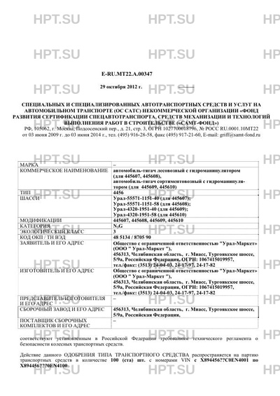 Базовое ТС / Шасси Урал-55571-1151-40 (для 445607); Урал-55571-1151-58 (для 445608); Урал-4320-195…