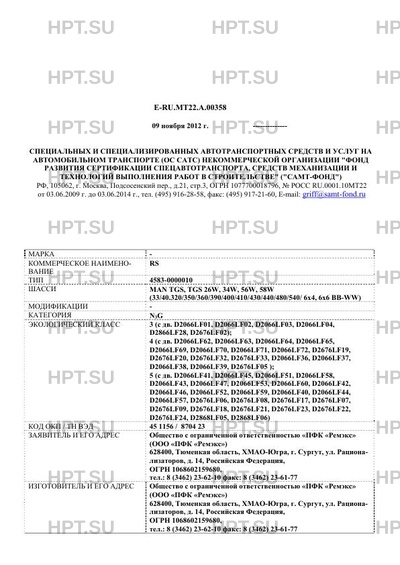 Предприятие-изготовитель Общество с ограниченной ответственностью "ПФК "Ремэкс" (ООО "ПФК "Ремэкс") 628400, Тюменкая область, ХМАО-Югра, г. Сургут, ул. Рационализаторов, д. 14, Российская Федерация, ОГРН 1068602159680, тел.: 8 (3462) 23-62-10 факс: 8 (3462) 23-61-77 E-RU.MT22.А.00358 2
