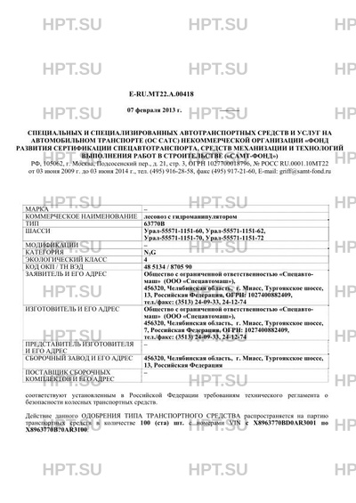 | Базовое ТС / Шасси | Урал-55571-1151-60, Урал-55571-1151-62, Урал-55571-1151-70, Урал-55571-1151-72 |