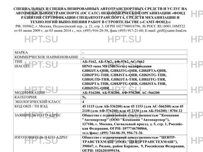 | Тип ТС | АБ-5162, АБ-5362, АФ-5762, АС-5662 |