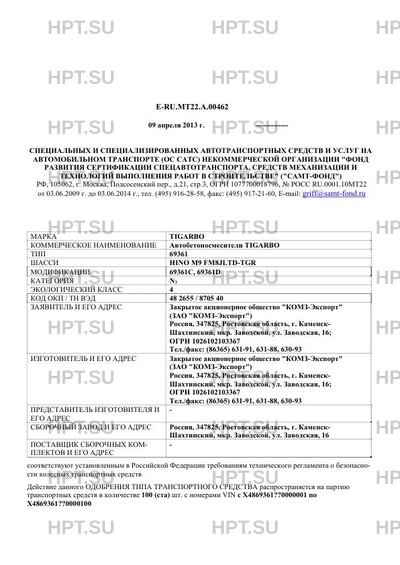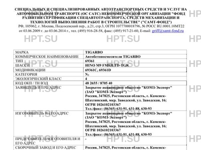 | Коммерческое наименование | Автобетоносмесители TIGARBO; 69361 |