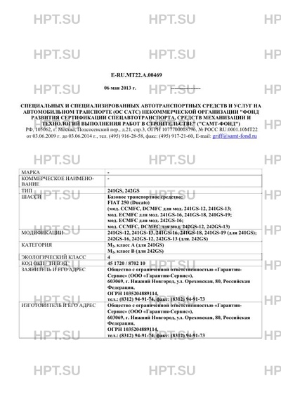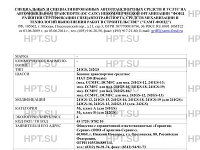 | Категория ТС | M2, класс А (для 241GS) M2, класс В (для 242GS) |