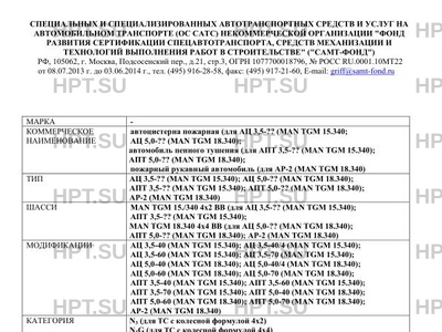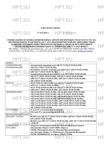 | Тип ТС | автоцистерна пожарная (для АЦ 3,5-?? (MAN TGM 15.340;,АЦ 5,0-?? (MAN TGM 18.340);,автомобиль пенного тушения (для АПТ 3,5-?? (MAN TGM 15.340);,АПТ 5,0-?? (MAN TGM 18.340);,пожарный рукавный автомобиль (для АР-2 (MAN TGM 18.340) |