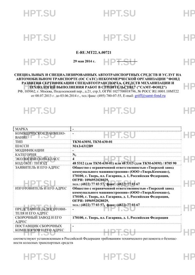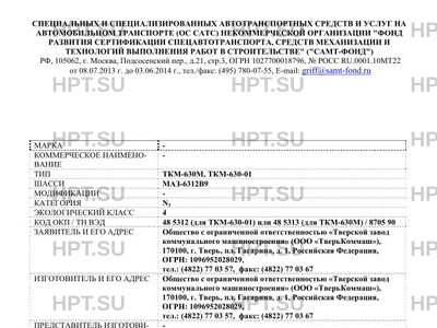 Заявитель Общество с ограниченной ответственностью «Тверской завод коммунального машиностроения» (ООО «ТверьКоммаш»), 170100, г. Тверь, пл. Гагарина, д. 1, Российская Федерация, ОГРН: 1096952028029, тел.: (4822) 77 03 57, факс: (4822) 77 03 67