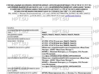| Заявитель | Общество с ограниченной ответственностью "ФоксТанк Моторс" (ООО "ФоксТанк Моторс") 603009, г. Нижний Новгород, ул. Гагарина, 110, Российская Федерация тел./факс (83145) 2-25-64 ОГРН: 1095261002220 |