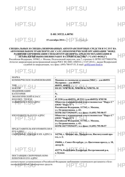 Коммерческое наименование Машина со сменными кузовами (МКС) - для 684931 Мусоровоз - для 684932