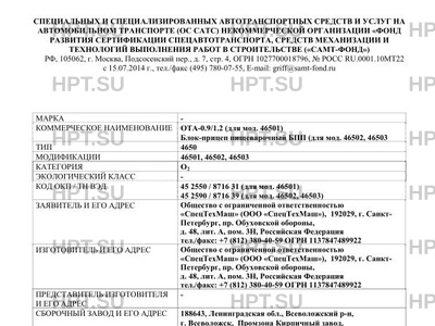 Заявитель Общество с ограниченной ответственностью "СпецТехМаш" (ООО "СпецТехМаш"), 192029, г. СанктПетербург, пр. Обуховской обороны, д. 48, лит. А, пом. 3Н, Российская Федерация тел./факс: +7 (812) 380-40-59 ОГРН 1137847489922