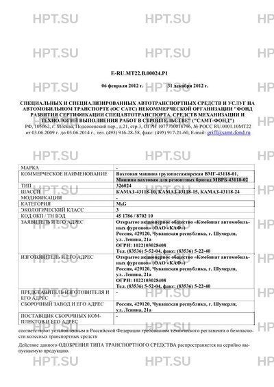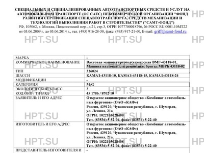 | Коммерческое наименование | Вахтовая машина грузопассажирская ВМГ-43118-01, Машина вахтовая для ремонтных б… |