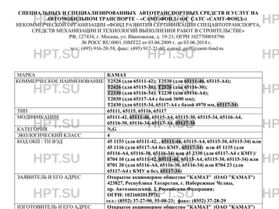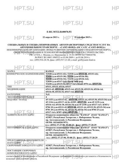 | Тип ТС | Т2528 (для 65111-42); Т2530 (для 65111-46, 65115-А4);,Т2426 (для 65115-30); Т2326 (для 65116-30);,Т2330 (для 65116-34); Т2230 (для 65116-А4);,Т2030 (для 65117-А4 с базой 3690 мм);,Т2430 (для 65115-34, 65117-А4 с базой 4970 мм, 65117-34) |