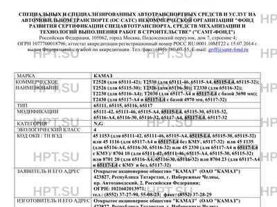 Тип ТС Т2528 (для 65111-42); Т2530 (для 65111-46, 65115-А4, 65115-L4, 65115-32);,Т2526 (для 65115-30); Т2326 (для 65116-30); Т2330 (для 65116-32);,Т2230 (для 65116-А4); Т2030 (для 65117-А4 и 65117-L4 с базой 3690 мм);,Т2430 (для 65117-А4 и 65117-L4 с базой 4970 мм, 65117-32)