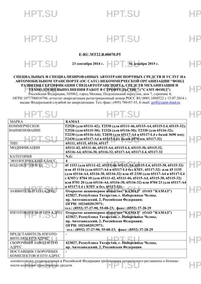 | Тип ТС | Т2528 (для 65111-42); Т2530 (для 65111-46, 65115-А4, 65115-L4, 65115-32);,Т2526 (для 65115-30); Т2326 (для 65116-30); Т2330 (для 65116-32);,Т2230 (для 65116-А4); Т2030 (для 65117-А4 и 65117-L4 с базой 3690 мм);,Т2430 (для 65117-А4 и 65117-L4 с базой 4970 мм, 65117-32) |