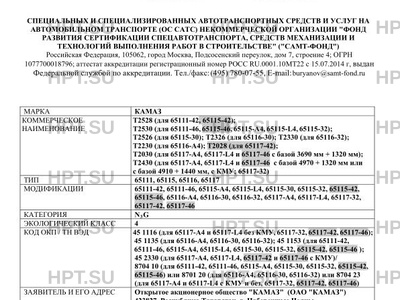 | Дополнительная информация | Назначение транспортного средства:; для перевозки грузов различного назначения, кроме опасных грузов (для 65117-А4, 65117-L4, 65117-32, 65117-42, 65117-46);; для буксировки полуприцепа (для 65116-А4, 65116-30, 65116-32); ; для транспортировки сыпучих и навалочных грузов (для 65111-42, 65111-46, 65115-А4, 65115-L4, 65115-30, 65115-32, 65115-42, 65115-46).; ; Перевод буквенно-цифрового обозначения модификаций транспортных средств в вариант обозначения для формализованного (цифрового) кода продукции в процессе производства и отгрузки в соответствии с системой SAP (System Analysis and Program Development) указан в таблице ниже.; ; Буквенно-цифровое обозначение модификаций транспортных средств; Вариант обозначения модификаций транспортных средств в виде формализованного (цифрового) кода; 65115-A4; 65115-23 (в том числе для поставок в МВД РФ: Автомобиль-самосвал КАМАЗ 65115-0006056-23); 65115-L4; 65115-19; 65116-A4; 65116-23; 65117-A4; 65117-23 (в том числе для поставок в МВД РФ: Автомобиль-тягач грузовой КАМАЗ 65117-0006052-23; Автомобиль-тягач грузовой КАМАЗ 65117-0005001-23 с КМУ); 65117-L4; 65117-19; |